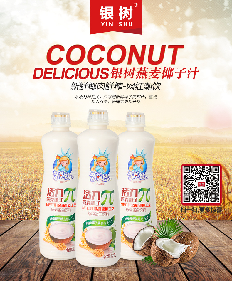 240ml银树加浓椰子汁海南风味0乳糖网红饮料植物蛋白椰汁饮料加盟