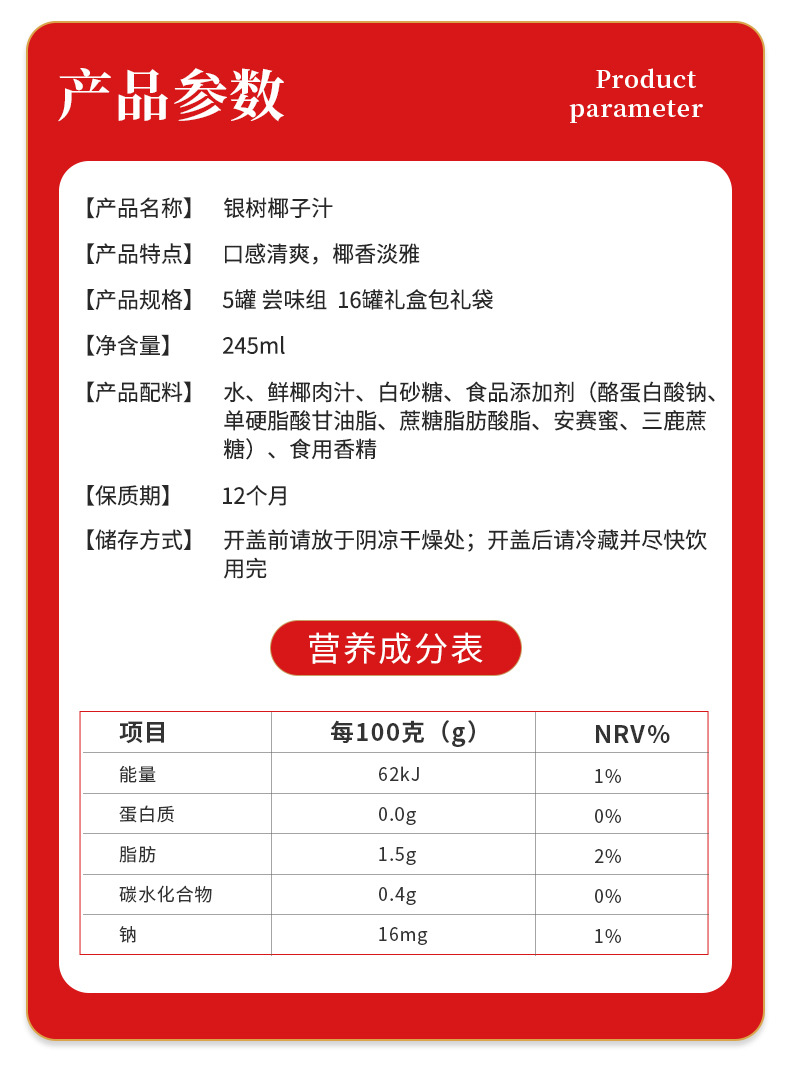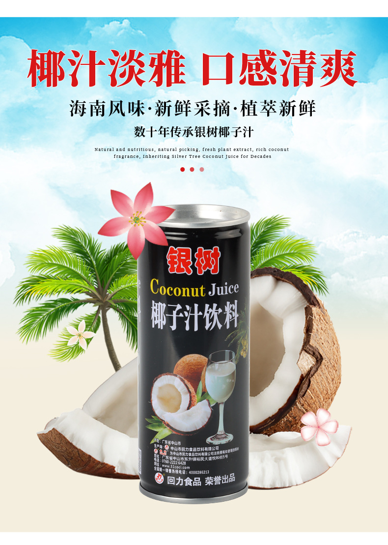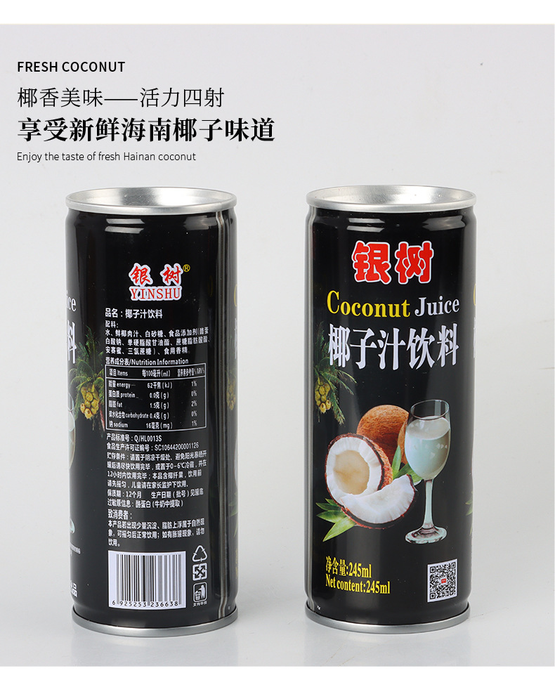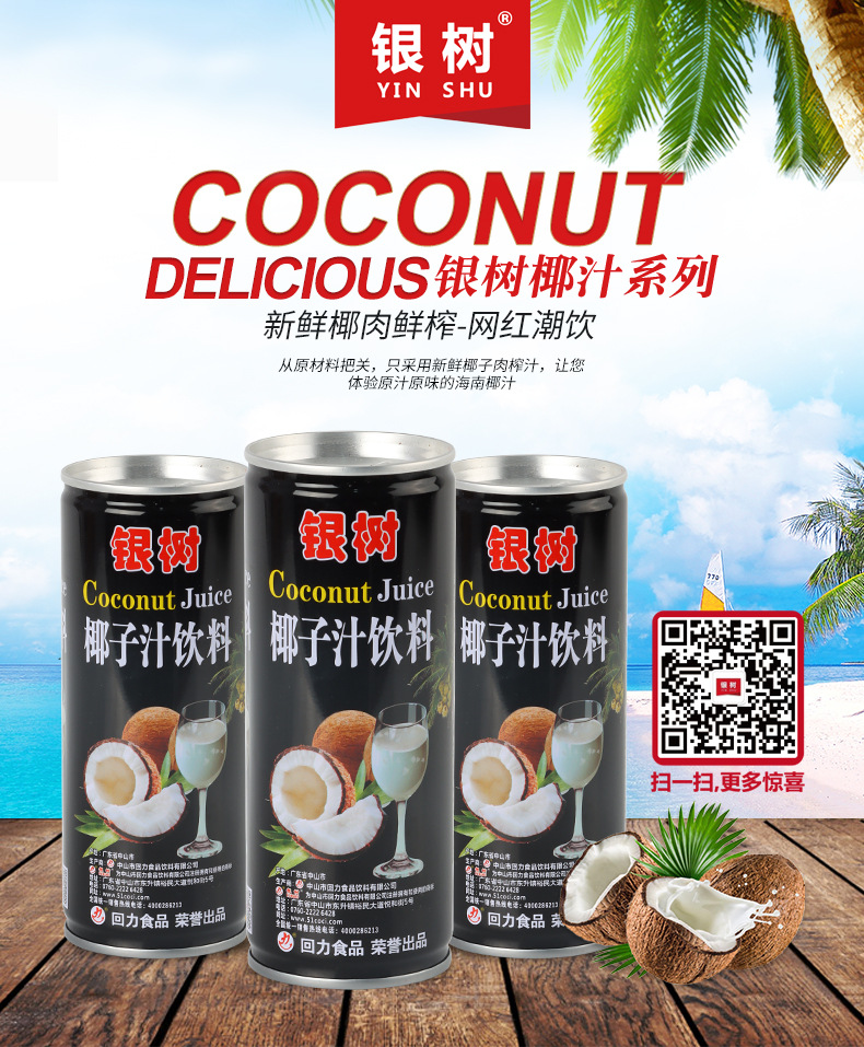 • 240ml银树加浓椰子汁海南风味0乳糖网红饮料植物蛋白椰汁饮料加盟